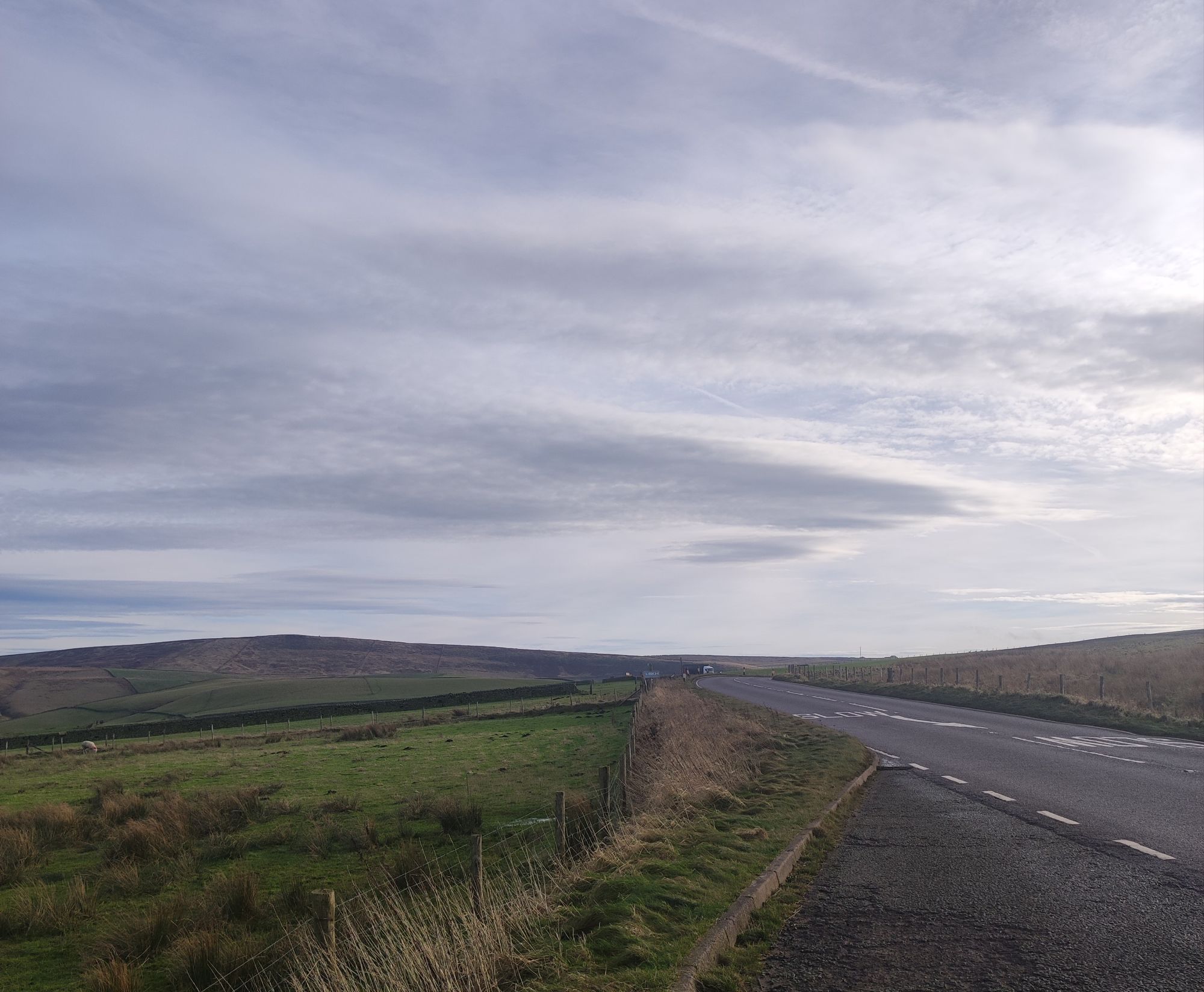 Driving under fog – or so it seems. Cloud skims the roof of the car until the incline takes us up and at it. Into the milk.